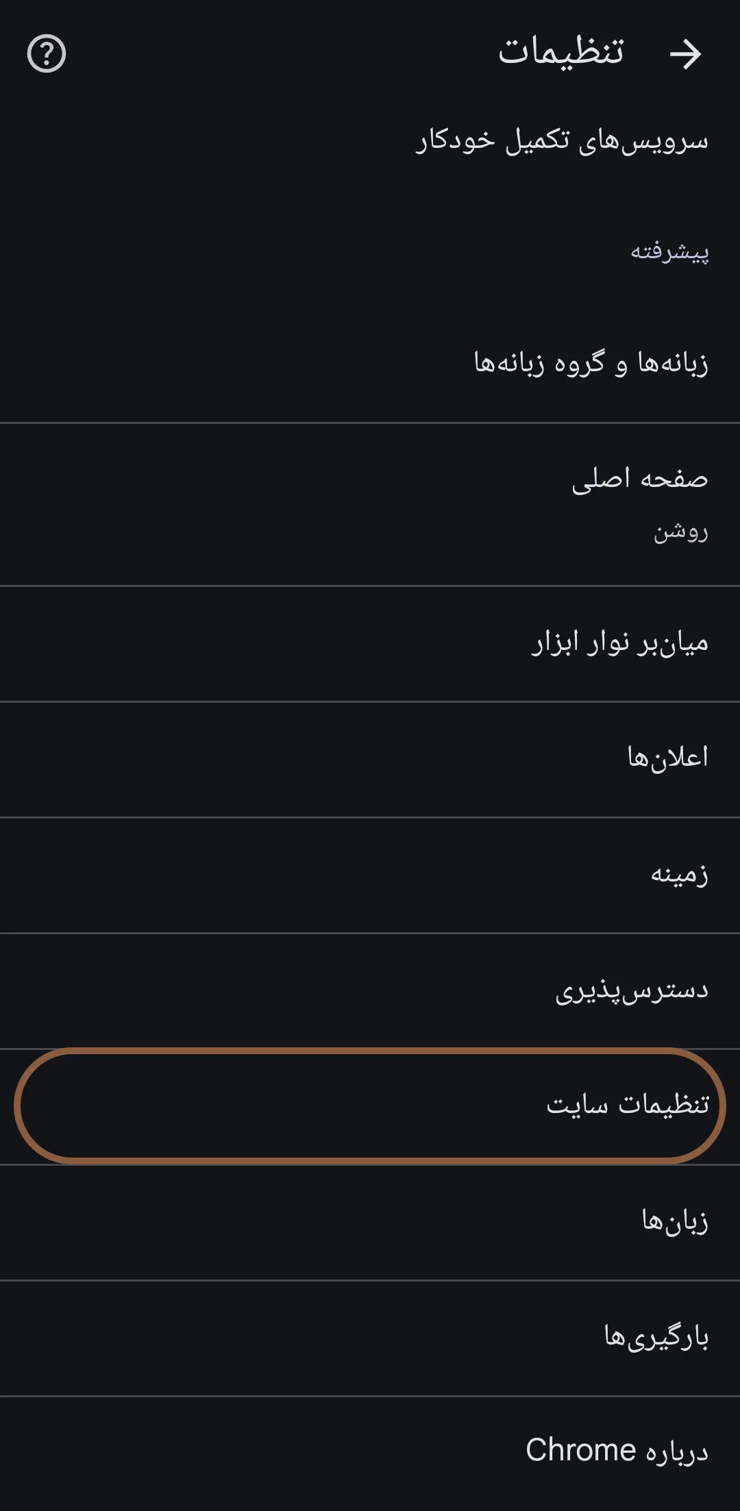 • به پایین صفحه اسکرول کرده و وارد بخش تنظیمات سایت (Site settings) شوید؛