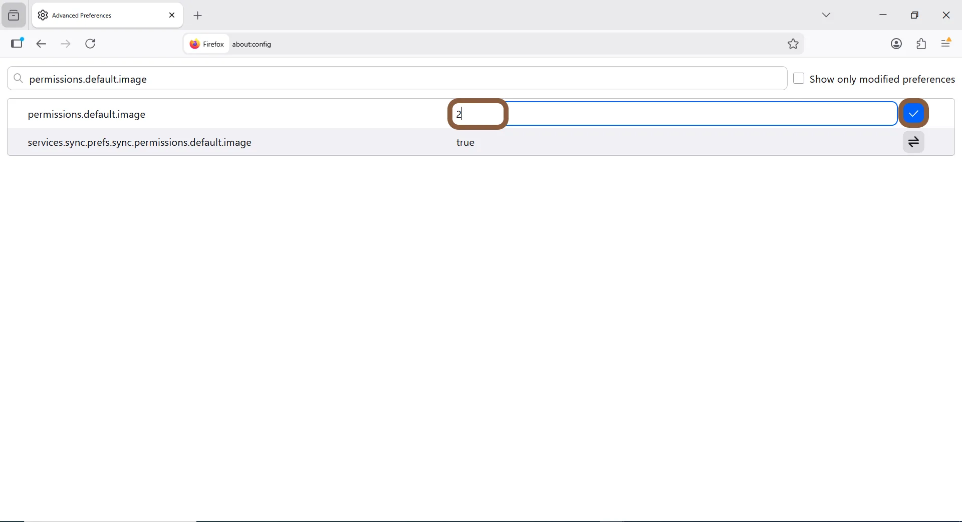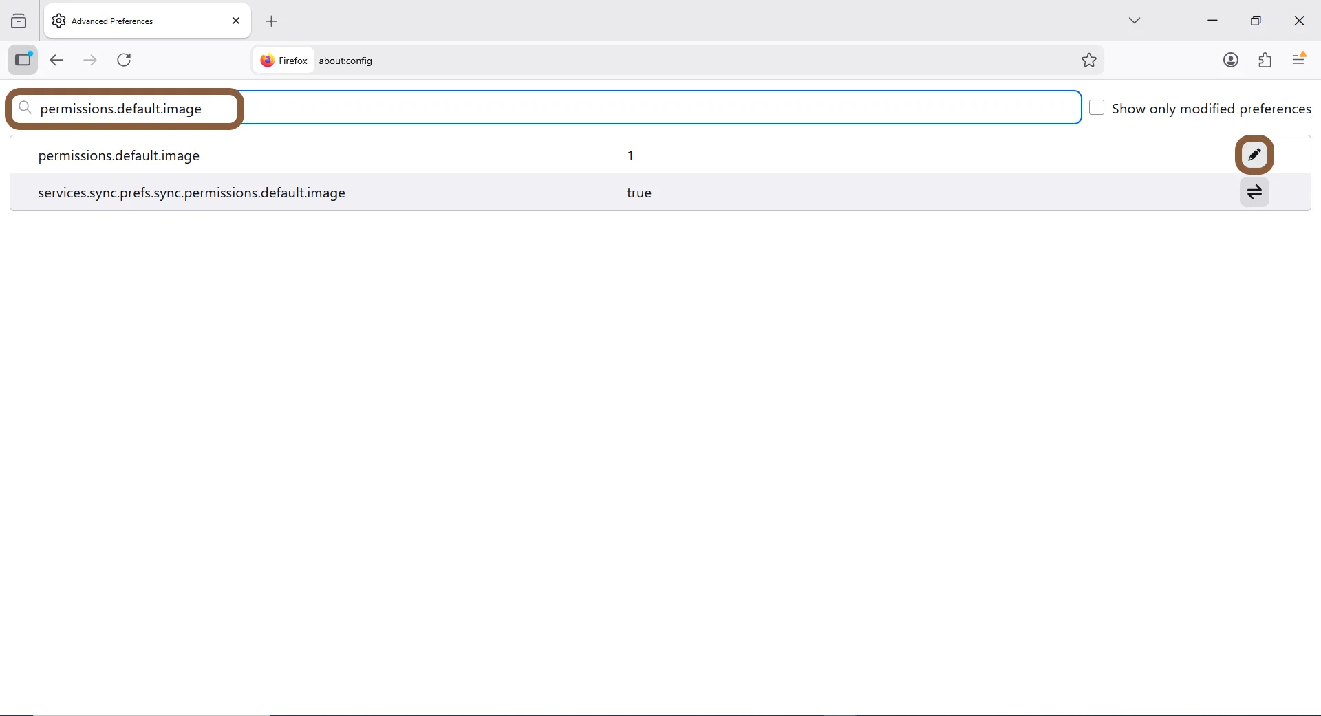 3. در کادر جستجو، عبارت permissions.default.image را پیدا کنید؛