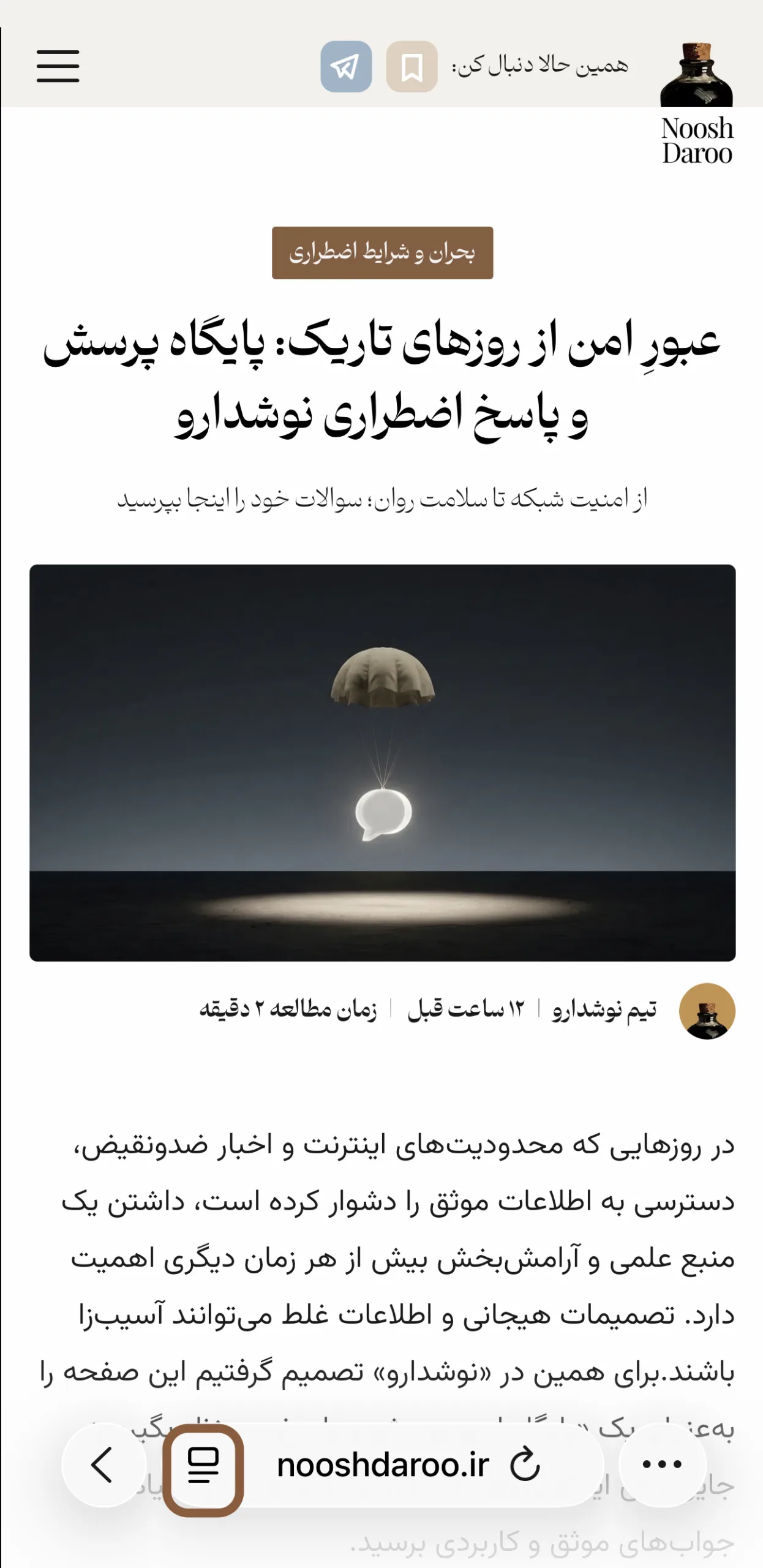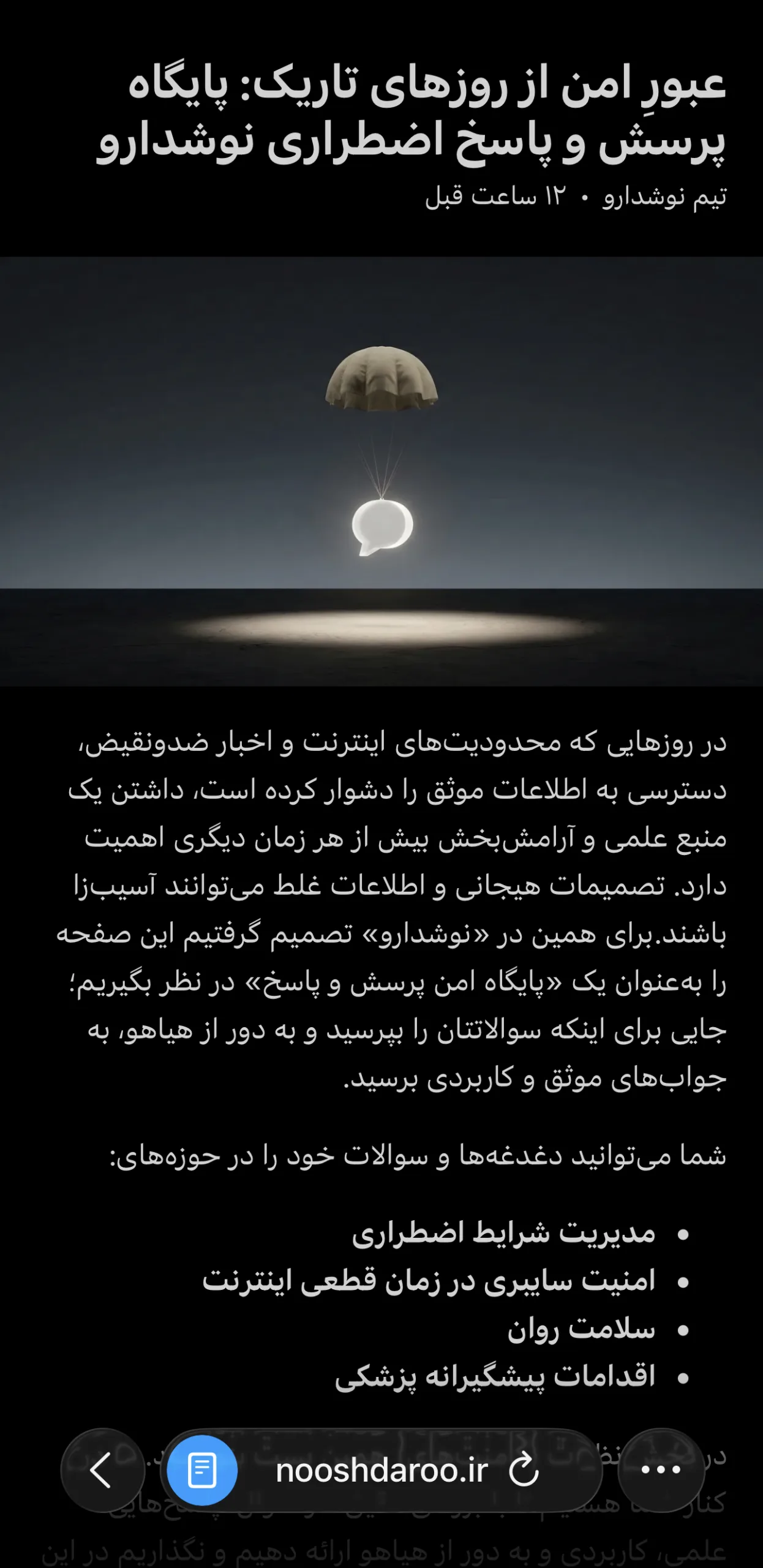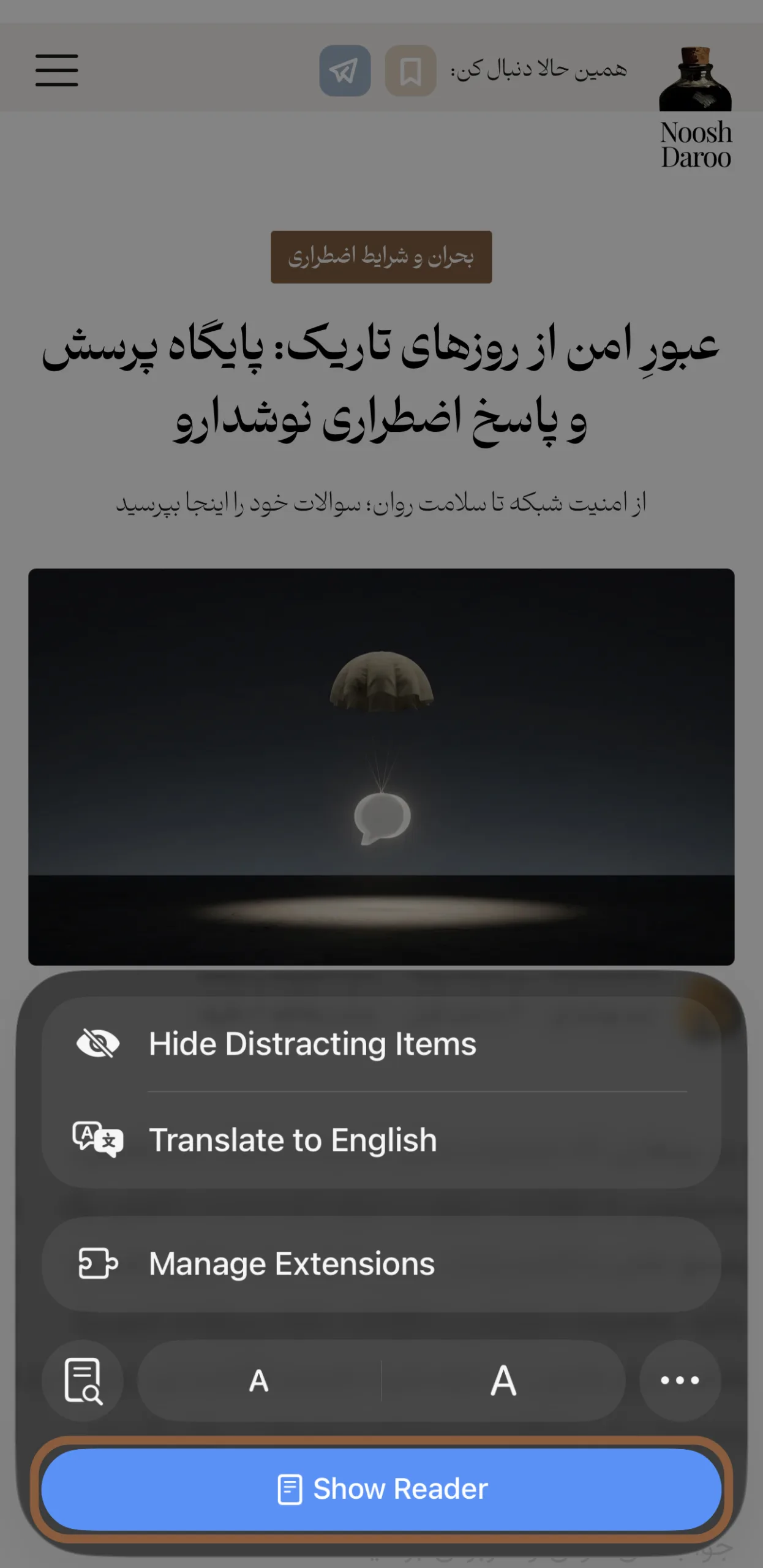 سافاری در نسخه موبایل هم مانند دسکتاپ دارای حالت مطالعه است. برای استفاده از آن: