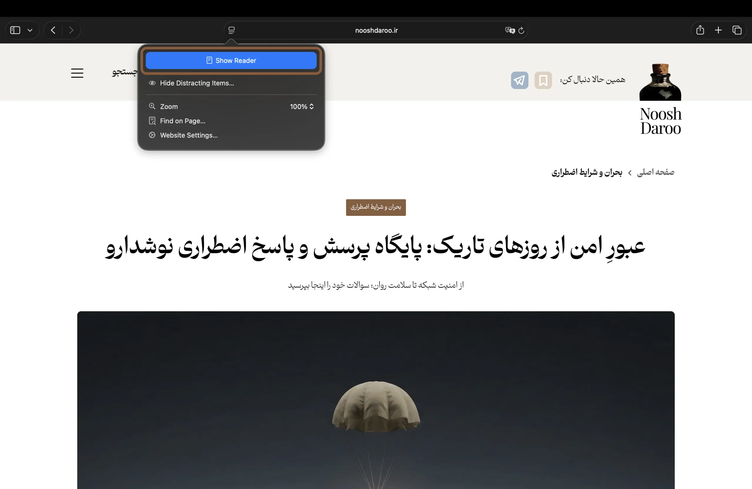 • در مرورگر سافاری، روی آیکونی به شکل چند خط افقی متنی در سمت چپ نوار آدرس کلیک کنید؛