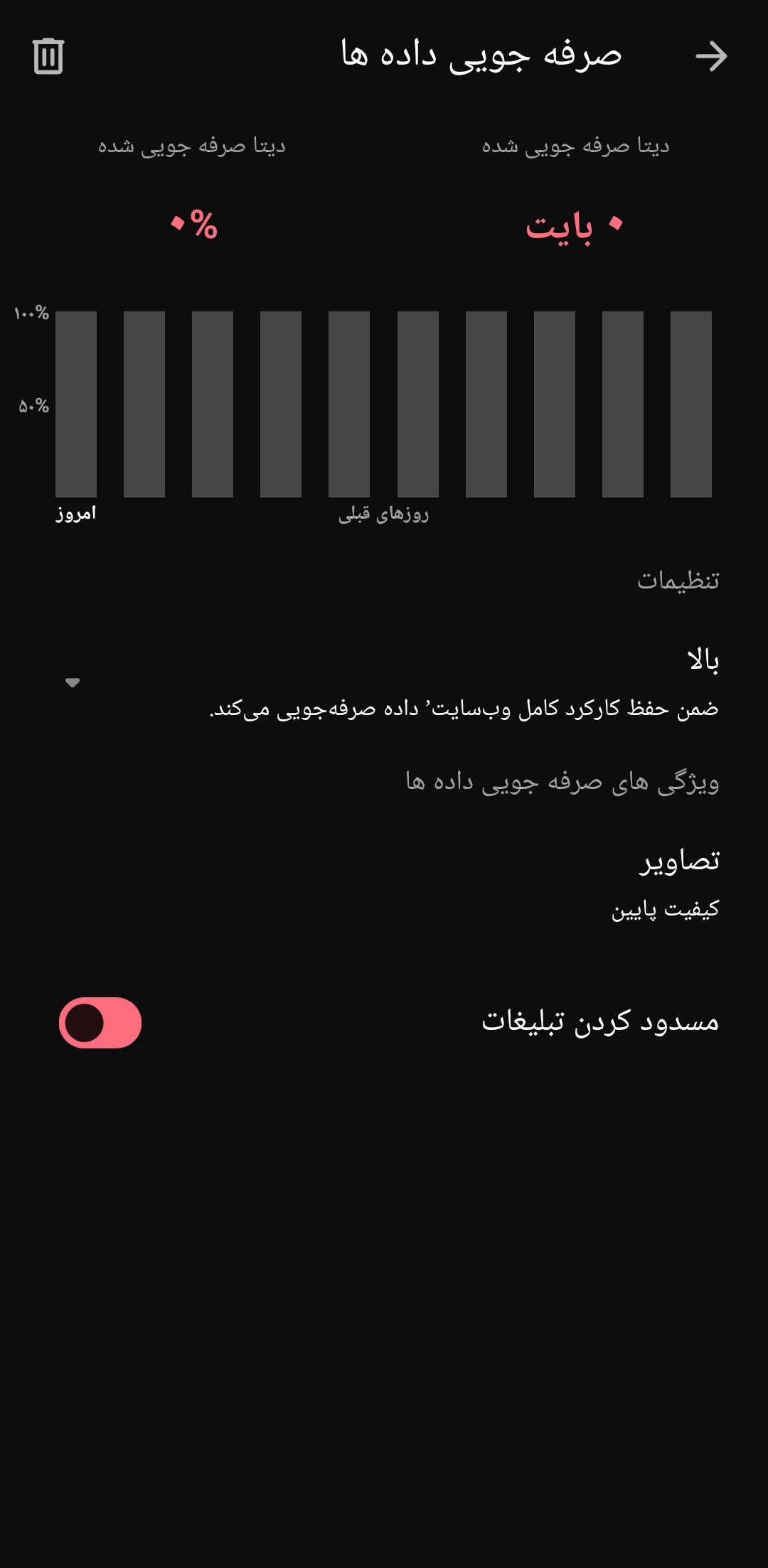 بارگیری تصاویر، ویدئوها و فایل‌های صوتی حجیم را متوقف می‌کند و معمولاً یکی از مؤثرترین گزینه‌ها برای کاهش مصرف دیتا است.