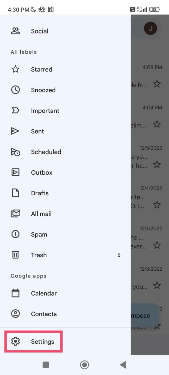- اپلیکیشن جیمیل را در گوشی یا تبلت باز کنید؛