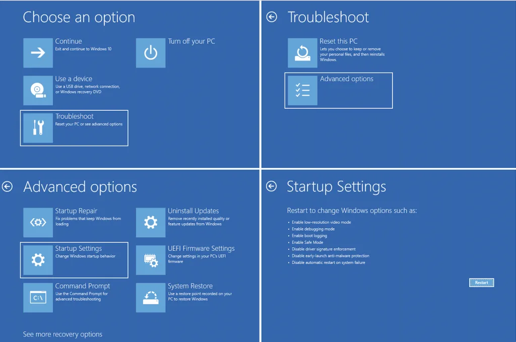 ۳. گزینه Advanced options را باز کنید و وارد Startup Settings شوید.
