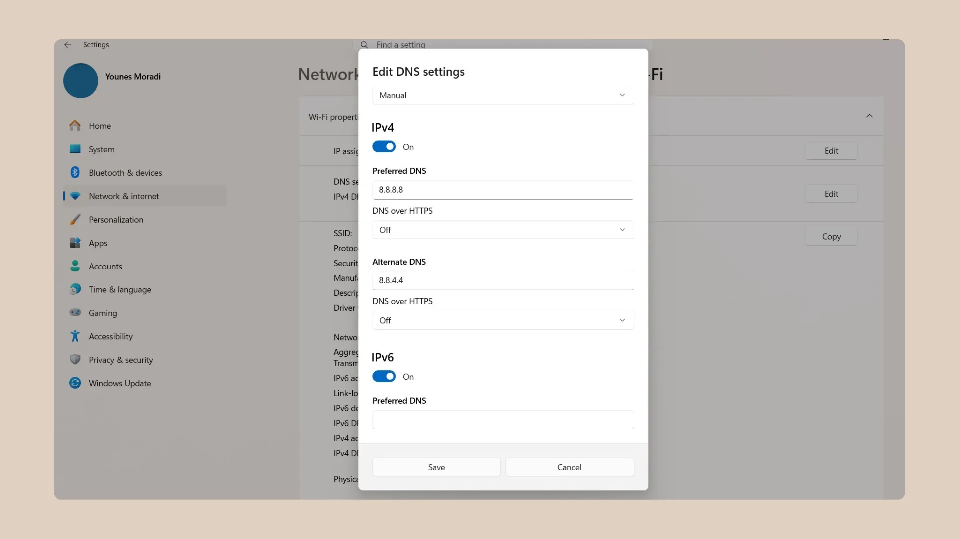 - آدرس اولیه و ثانویه سرویس DNS مورد نظرتان را درون کادرها وارد کنید؛