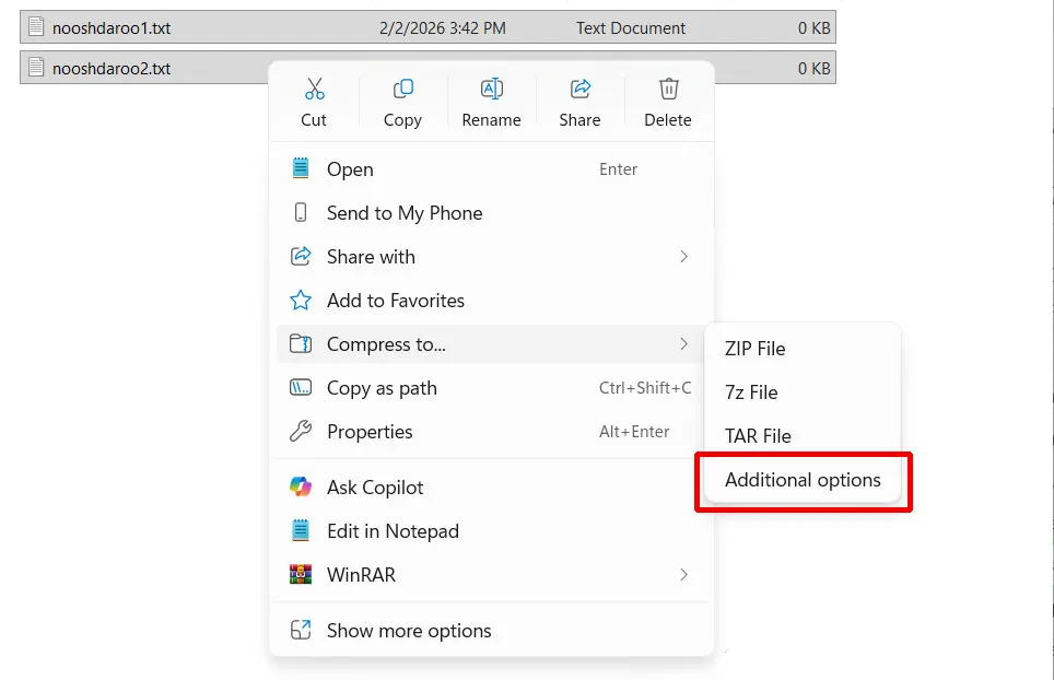 ویندوز ۱۰ و ۱۱ قابلیت فشردهسازی به سه فرمت ZIP و 7z و TAR را بدون نیاز به نرمافزار جانبی ارائه میکنند: