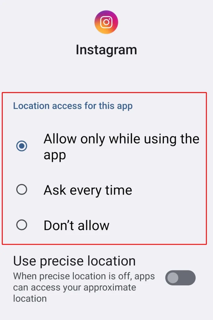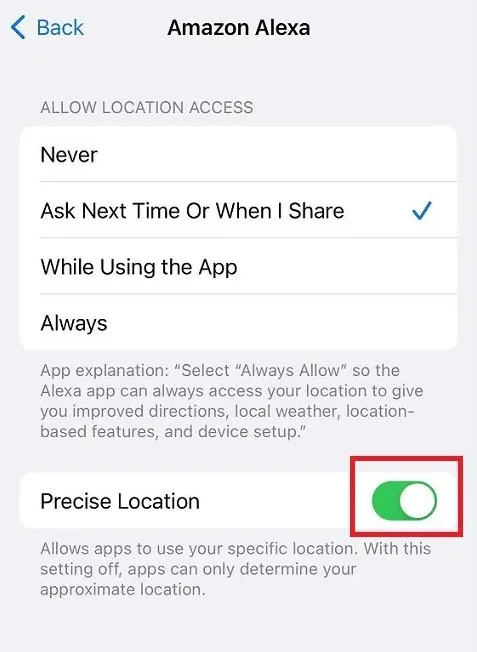 - گزینه Precise Location را غیرفعال کنید تا دسترسی برنامه به موقعیت دقیق محدود شود.