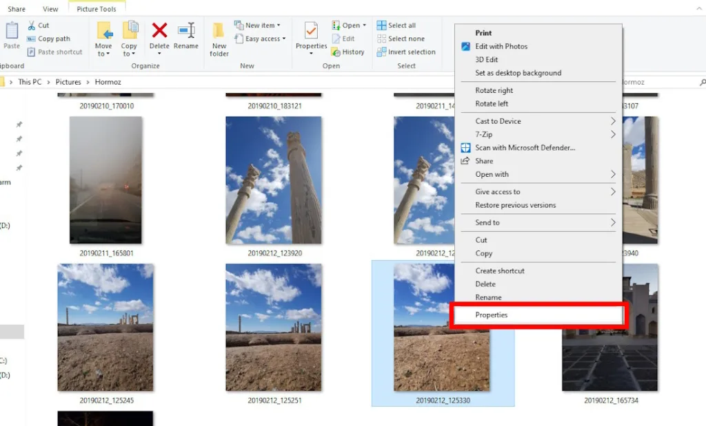 - روی فایل تصویر مورد نظرتان راستکلیک و گزینه Properties را انتخاب کنید.
